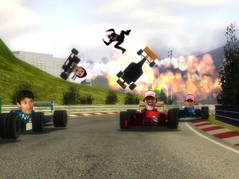 Each race starts nice and neat with 8 cars lined up on the grid, but these aren’t ordinary cars. These cars are specially designed to blow up and go airborn with the slightest bit of contact. Simply nudging the car in front will shoot it upwards in a ball of fire. Even if you don’t go near the other cars, they’ll still find a way to blow up. By the first corner the entire track will be up in flames. Speed isn’t just about winning, it’s about winning in style with an inferno of metal behind your ear.
