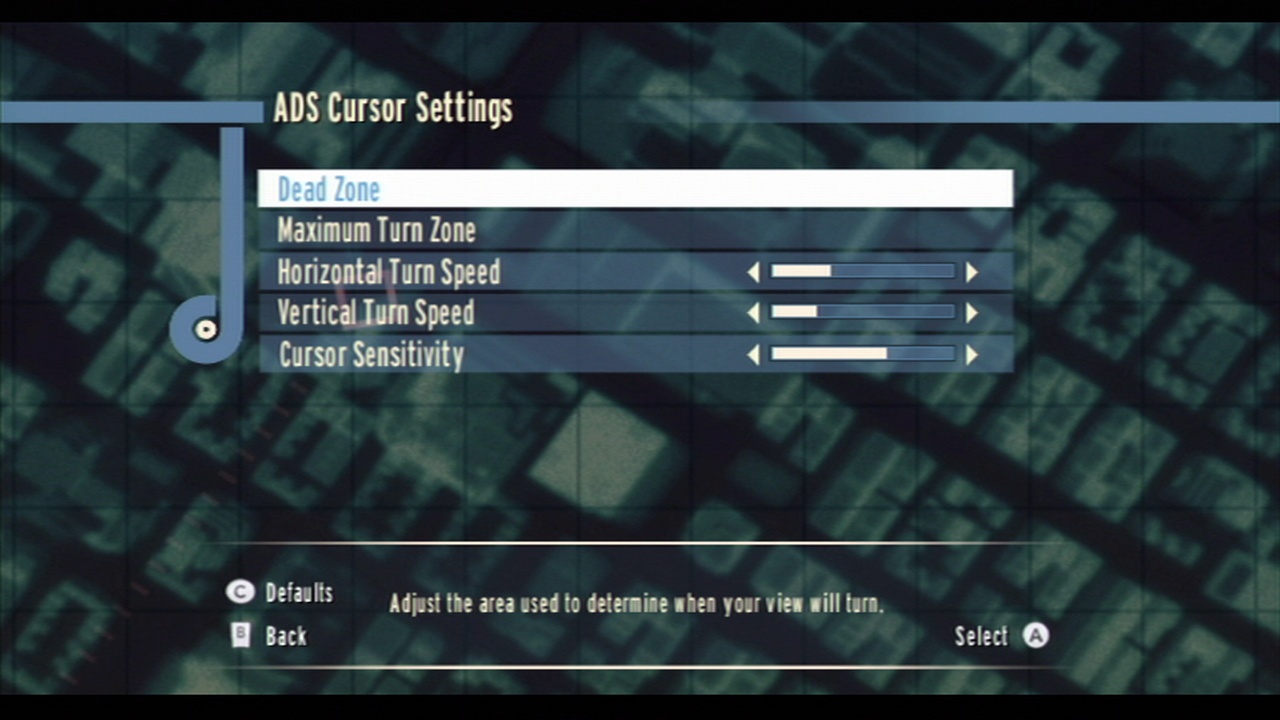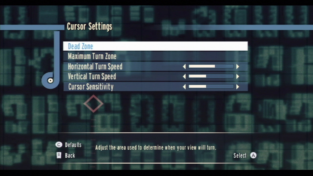 In GoldenEye, exiting the Dead Zone is not gradual: it jerks to a minimum turning speed. Swinging the cursor from one side of the screen to the other is jarring, since the camera will make a sudden, dull stop (thru the deadzone) – this annoys me to no end. I suppose turning on Camera Look would improve one aspect of this, but we already know it does way more harm than good.