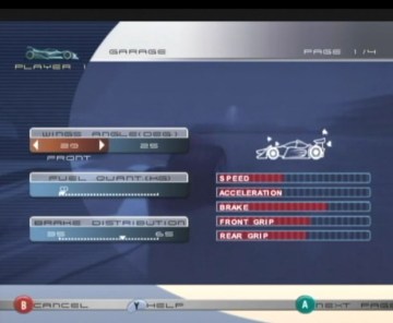 The game controls very well, it uses the cube controller’s triggers for a pressure sensitive throttle and brake, which is something I’ve craved in GameCube racers since the beginning. The C stick changes the camera, but be careful: while driving you can actually switch the camera to another car in live gameplay. This makes it a bit awkward when you switch back to your car and it’s facing the wrong way accelerating into a wall. X acts as a “target” button, it places a circle around another car on track and gives you information about their highest speed and best lap time.