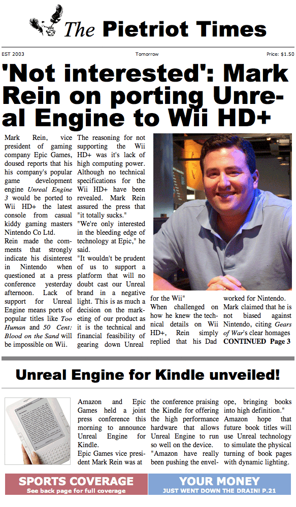 Managed to get my hands on tomorrow’s newspaper before it went to print. Interesting front page headline! I’ve had to reduce the size here to fit it in our site’s narrow table but you can click the thumbnail to enlarge it if you can’t read it clearly!
