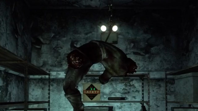 I walked back through the hallway and noticed another door, locked. Fuck it, it wont budge and looks way beyond my lockpick skills. I went down a different corridor this time, halfway down there was a body hanging from the roof by two sharp metal forks. This was probably that raiders fate if they found out he was skimming bottlecaps. Maybe that was one of the “newbies”? I bet he wished those claw monsters would have killed him first. I continued on to find a stairway, and slowly climbed up.