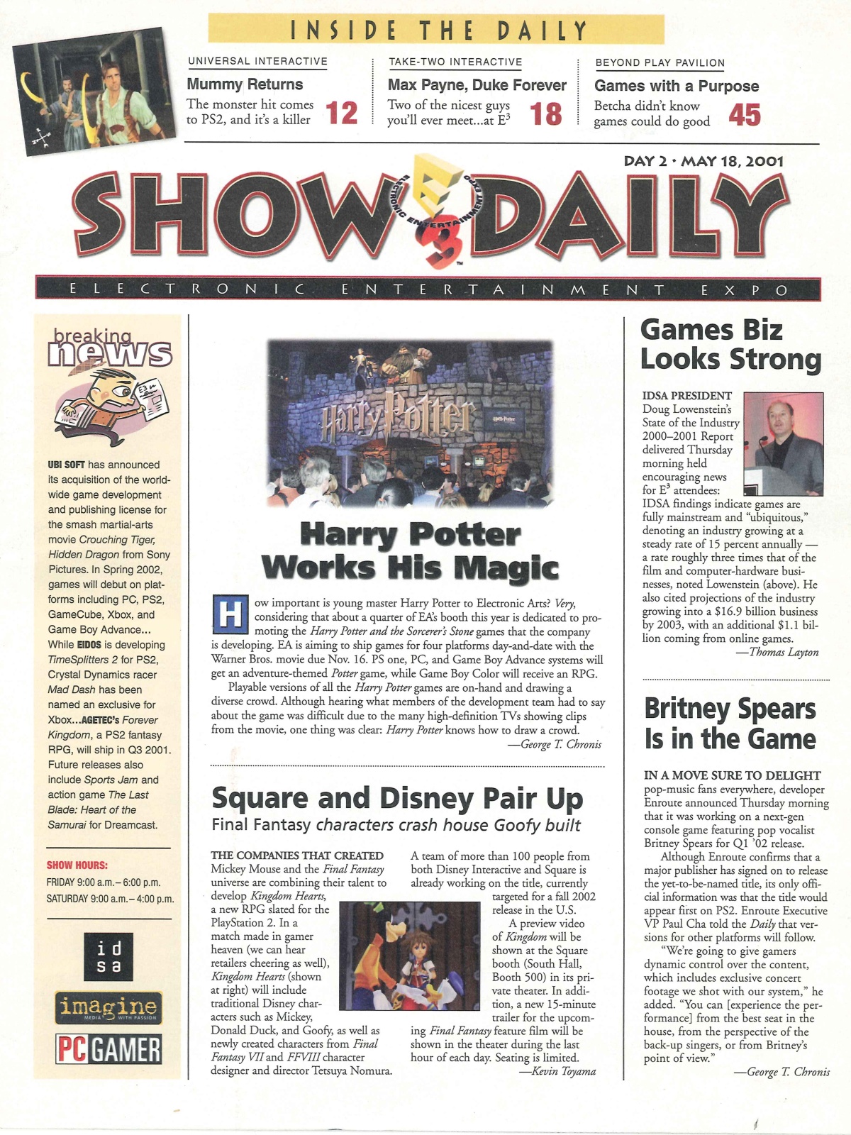 As a follow-up to my previous E3 scan, here’s some subtle marketing Nintendo spread around E3 2001, again, on the back of the E3 Show Daily magazines. Checkout the “interesting” front covers, too, and maybe you’ll question how there could be any excitement for such an unappealing video game industry at the time (as presented by the magazine). “Doug Lowensteins’ State of the Industry 2000-2001 Report: IDSA findings indicate games are fully mainstream…” Yes!…? Wait, is that really a good thing or a bad thing?