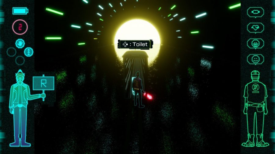 Did I mention Travis is an assassin and kills people for a living? He is definitely still the same Travis, but that is often a small background detail in this game. We’re too busy drinking tea and reading videogame magazines. That leads me to talk more about the writing in this game, it’s more than just the text adventures. The magazine articles you can read in Travis’s home are surreal and very convincing. They detail all the games for the Death Drive MK II as if they were just being released, with all the enthusiasm of a 90s gaming mag and similar wordplay. You also get faxes to read from a cat and an unknown goverment agent. During gameplay itself you can find NPCs with words of wisdom and just generally great cutscene direction. It’s a highly expressive game from start to finish. There’s also some clear references to Suda’s other work if you’re into that. I won’t spoil any of the finer details.