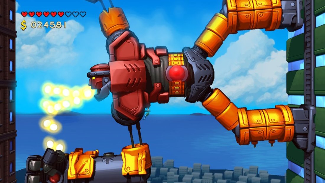 That said I have to be honest that I was a bit disappointed when I found out this was a boss rush game, because I loved the platforming of Gunman Clive. I prefer a run and gun style game so I was unsure I’d like this. Luckily this game kind of proved me wrong and made me realise how much fun bosses can be. They are almost levels themselves really, just with a different presentation and layout to them. You have different obstacles to avoid, different parts to attack, and there’s still a good amount of platforming and climbing when the bosses are so big. There’s one boss where you just climb up layers of its body while removing parts, and it’s not that different to a regular platforming level in Donkey Kong Country Tropical Freeze. That thrill when you get to the top of the boss and nail that last weak point is really something special.