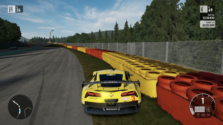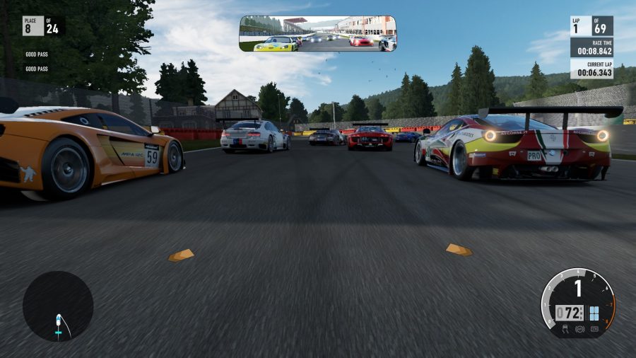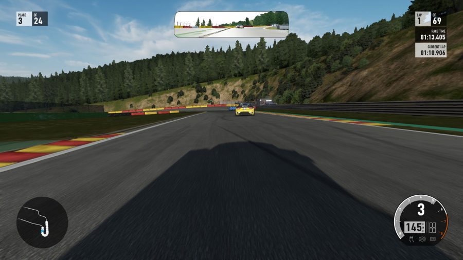 About to lap some cars for the first time. Might seem a bit early but with 24 cars on track some of them are bound to be having a bad race. It’s just slow AI in reality, but I like to imagine them as racers to make it more fun. After quite a few laps on my own I was happy to have something new to focus on now with a couple of other cars to think about.