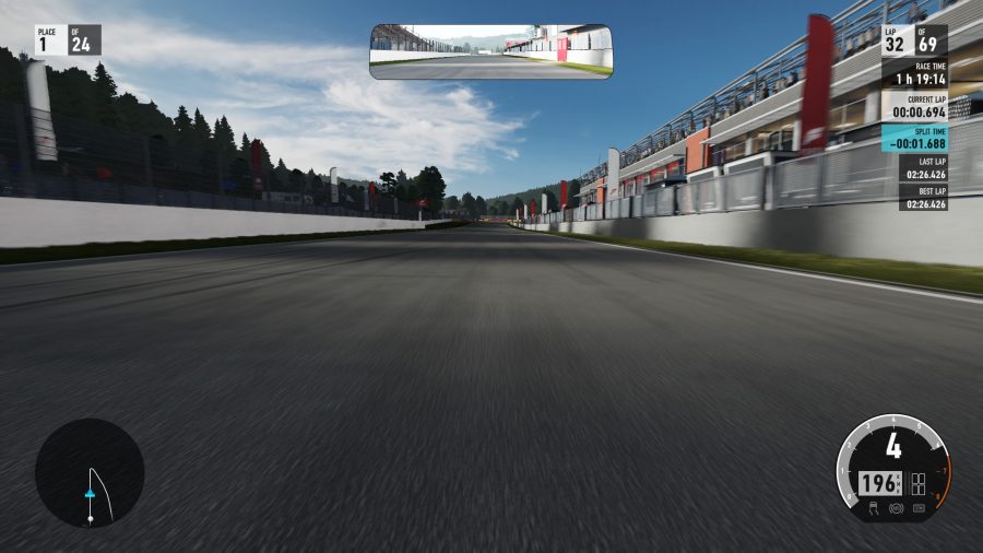 The first part of this mini-journey is preparation, the how and the why. You need a good reason to do this because it’s a time-sink. For me, I want to train myself to be more patient and focused, distract my mind a little bit, and also try and get better at this particular track, Spa. It’s one of the best tracks in the world and I don’t think I could drive for 3 hours on a bad track, so this works out. Next you look at the how, what options are you toggling and how ready are you physically? Difficulty and assists can be set however you like. I don’t want to be overly stressed so it’s not on the hardest difficulty, but I also don’t want to get bored and breeze past everyone so I put the AI difficulty to average. Now make sure you’ve got the next few hours free, I’m doing this at night when not much is happening. Also make sure you’ve eaten in the last few hours and have a lot of water within drinking distance.