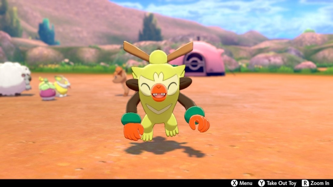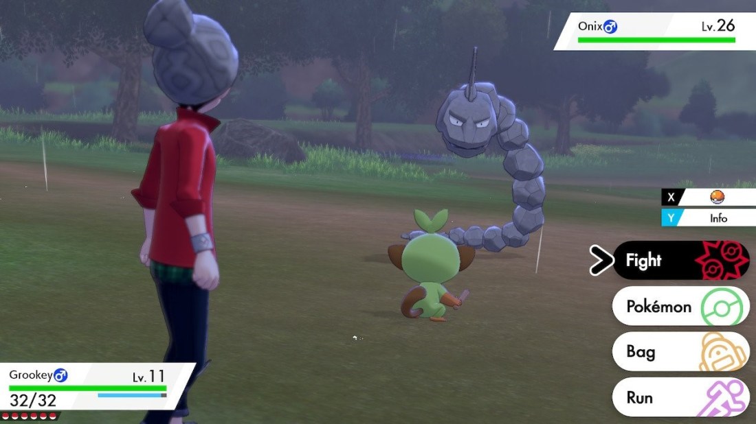 The wild areas are so big that the weather changes several times before you get to the end, with the zone split up in “sectors”. You can still rush through it pretty fast if you want to, but there’s so much to do here. Pokemon of all different types and levels roam about. I think they found the perfect balance by keeping the old feeling while introducing new freedom. There’s still that feeling of risk when you run through tall grass since Pokemon run towards you, and can corner you. There’s also a feeling of danger because you can run into Pokemon significantly higher leveled than your own. You have to be a bit careful who you run into. Grookey… NO!