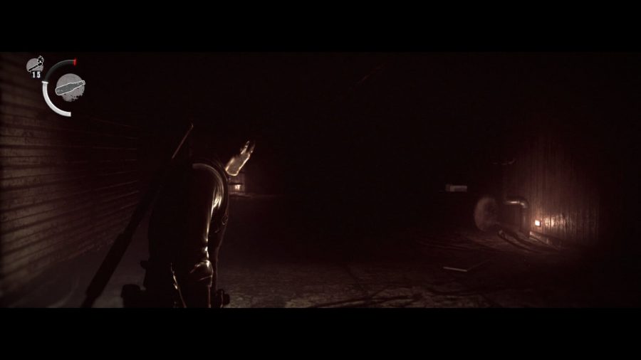 You play as a cop named Sebastian Castellanos. He knows how to shoot quite reliably but his movement isn’t super flash like an athlete or superhero. In fact he’s quite unfit and has a bit of a drinking problem. He can only sprint for 4 seconds (this can be upgraded with Brain Juice) before running out of breath and he’s a bit clumsy when turning around. It all matches the gameplay though and you have to be extra careful when approaching or disarming traps. It also means you can’t constantly sprint around in circles to trivialise enemy fights. It’s nothing that feels too restrictive though, as his normal speed is decent and comparable to most survival horror games really. There’s just no easy escape in this game, and his melee attacks are quite weak. To put the difficulty into perspective I died 52 times in my casual playthrough. The checkpoints are pretty forgiving so nothing really felt insurmountable. Hmmm, did you hear something?