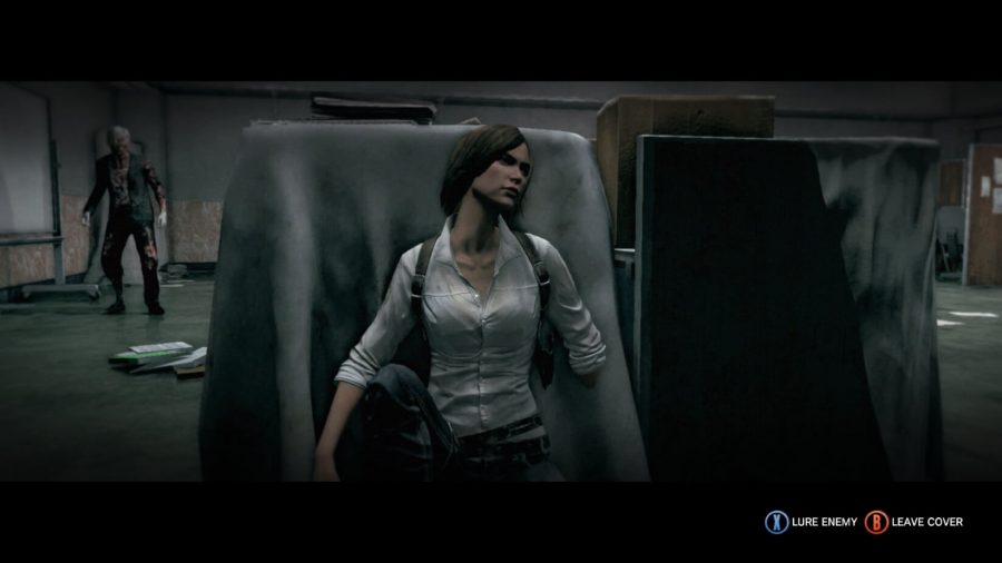Here’s a nice gameplay addition. After you dramatically lose your torch, you get a supply of glowsticks to throw around dark rooms to light up spots of your choice. You have to be careful you don’t hit a zombie while throwing, so it helps to listen as well. Apart from that there’s actual a few action pieces in this DLC, but they are over quite quickly and nothing more than a shooting gallery really. There’s a couple of new stealth segments with regular enemies that I found pretty fun. It’s just very inconsistent because some parts are awful, including a certain boss segment. There’s a “harder” version of an enemy that does laps around a room and you have to run around wildly for a few minutes. It’s almost completely lacking in strategy and only difficult because your movement sucks. For some reason Kidman just doesn’t seem to react when her life is in danger. Oh something’s walking towards me about to murder me? Better stop and catch my breath. Now I’ll slowly jog away at walking speed, because despite doing this 20 times already I’m now too spooked to move!