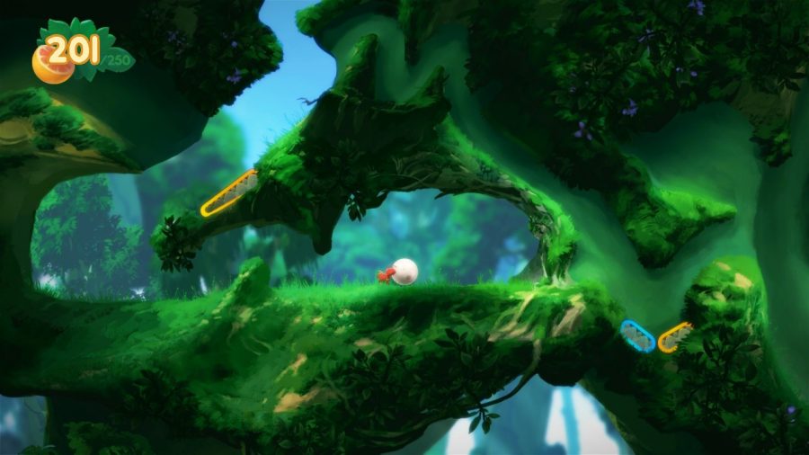 Sometimes I get lost. With such an unconventional form of movement, progression can sometimes be a puzzle itself. Where will this flipper take me? Can I get back? What happens if I roll down, or go back to the left? A bit of experimentation is required, but everything slowly unravels in a satisfying way. It’s always worth the struggle just to see all the different environments on this island. It’s full of lush flora, windy caves, flowing waterfalls, colourful meadows and snowy peaks. The weather changes and everything responds with lively animations and a tangible sense of nature and peace. It’s so detailed and beautiful. Trust me, I’d know. The foreground and background is all I can see with this ball in my face.