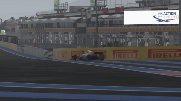 I cut through the final corner to get the highest possible speed on the main straight, the irony of the Road Safety sign not lost on me. This would be an extremely stressful race for the trackside marshals, I’d imagine. They all stood there calmly with remarkable composure, as we drove full speed right next to the barriers. Don’t worry guys, we know what we’re doing! We’re in that elite class of athletes known as gamers. No matter what goes wrong we’ll arrive in one piece, just don’t try this at your local racetrack.