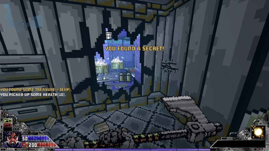 The aesthetic changes with each world, but the gameplay loop starts to drag a bit. While Project Warlock has very solid and satisfying core gameplay, the flat environments don’t really offer enough texture and detail. Like when bubblegum loses its flavour and starts to taste like glue. To its credit, it does try to mix things up with lots of exploratory gameplay. Switches and door keys are often cleverly placed, with secrets to find as well by blowing up walls or humping every wall and mashing the A button. Don’t look at me like that, it’s a gamer habit.