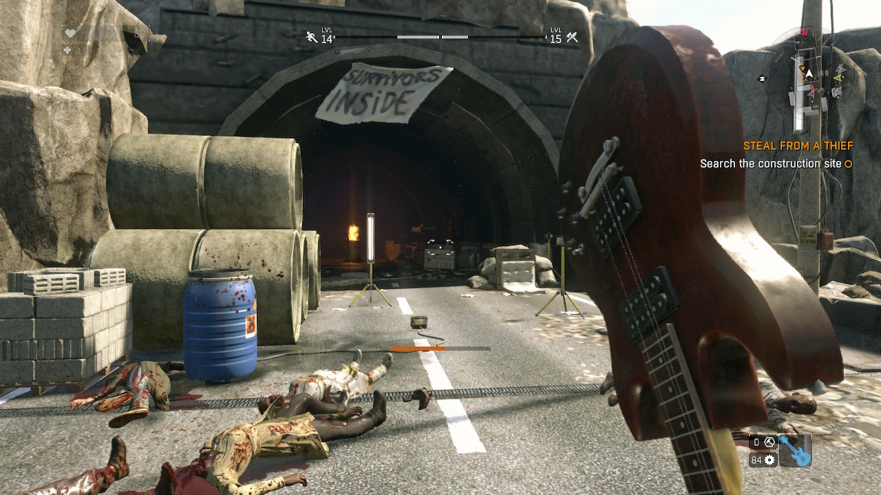 Now if you’ll excuse me, I have some people to save. After clearing the zombies from the entrance, I plugged my amp into the lighting system and ripped a killer guitar solo to see if anybody was still alive. Cranked up to 11, the notes bounced off the tunnel walls and penetrated deep. Hell yeah, I didn’t even need an echo pedal with a setup like this. I stopped and listened… there was a faint sound coming back. I walked closer and it was unmistakable. The words “PLAY FREEBIRD” shot out of the tunnel and I immediately knew what the next quest was. I’m here to help, friend.