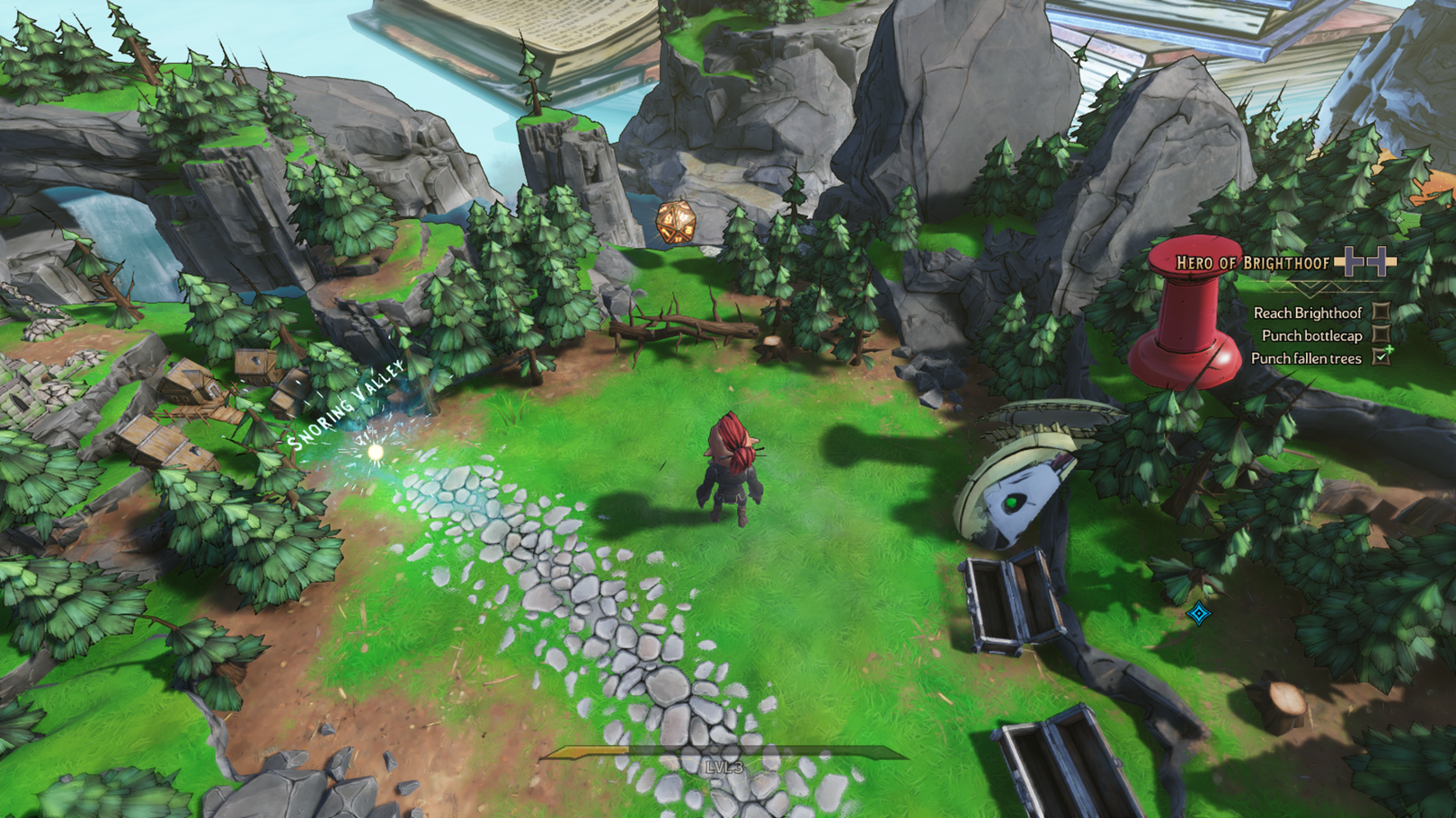 I’d never seen the world from this perspective before. This “board game” view gave me an insight not just into the scope of the world, but my own abilities. Could I really punch my way through some trees to a new path? *hyaarrr!* YES! I can open up shortcuts, visit camps, talk to people, find treasure. I could travel great distances in seconds.