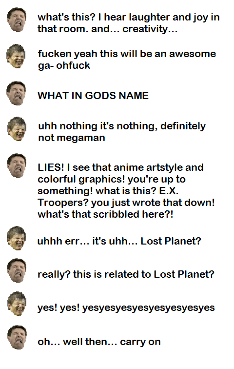 *tch* This is Leon. I’ve arrived on the Wii U through the Virtual Console, some kind of digital download service. They took a sample of my blood and uploaded it. I’ve also been injected with a virus, it seems to have changed my reflexes. I can see a green cursor wherever I aim my gun. It seems to be beneficial so far, but I’ll keep you posted on any adverse affects. Leon out. *tch*