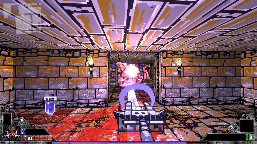 Project Warlock immediately impresses with a crunchy badass guitar riff, with tons of options on the main menu to make you feel like you’re about to order an explosive meal at the Mayhem Diner. The gameplay feels right at home with other 90s FPS games like Doom or Duke Nukem 3D, but the graphics take some getting used to. Unlike other FPS that imitate this style in actual retro engines (like Ion Fury in Build), this game is made in the more modern engine Unity. It has a cel-shaded outline with more of a Minecraft or Dragon Quest feel. It took me a while to get used to, but it runs well and allows for some impressive lighting effects and colours that really pop like candy. Candy popcorn. Bubblegum you can swallow.
